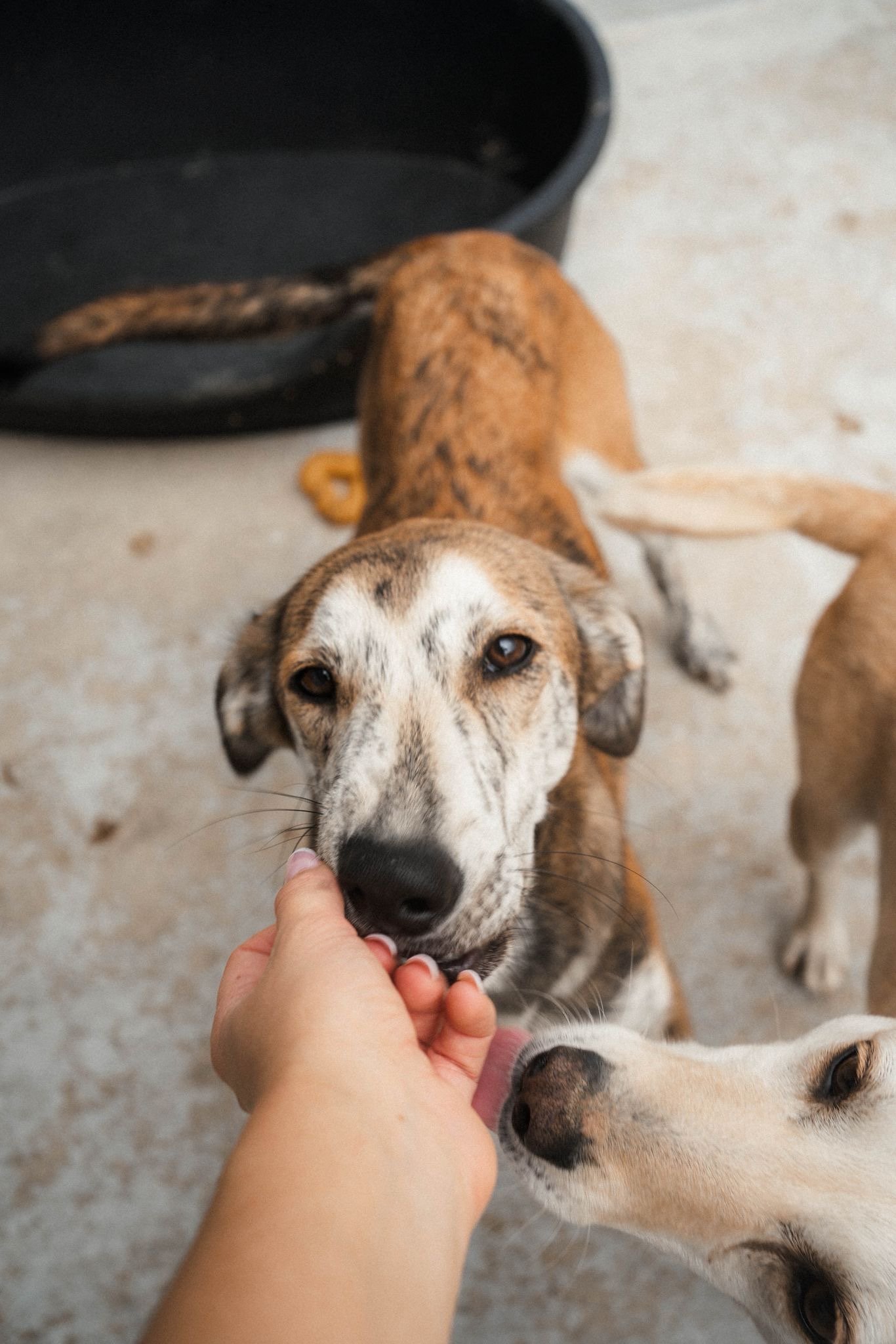 Ein weiterer Hund in seiner zukünftigen Familie würde ihm sicherlich sehr guttun, ist aber keine Bedingung. Aktuell lebt Pelle friedlich mit einer kleinen Hundegruppe zusammen. Wie die meisten griechischen Hunde ist Pelle sehr sozial und spricht die Hundesprache perfekt.