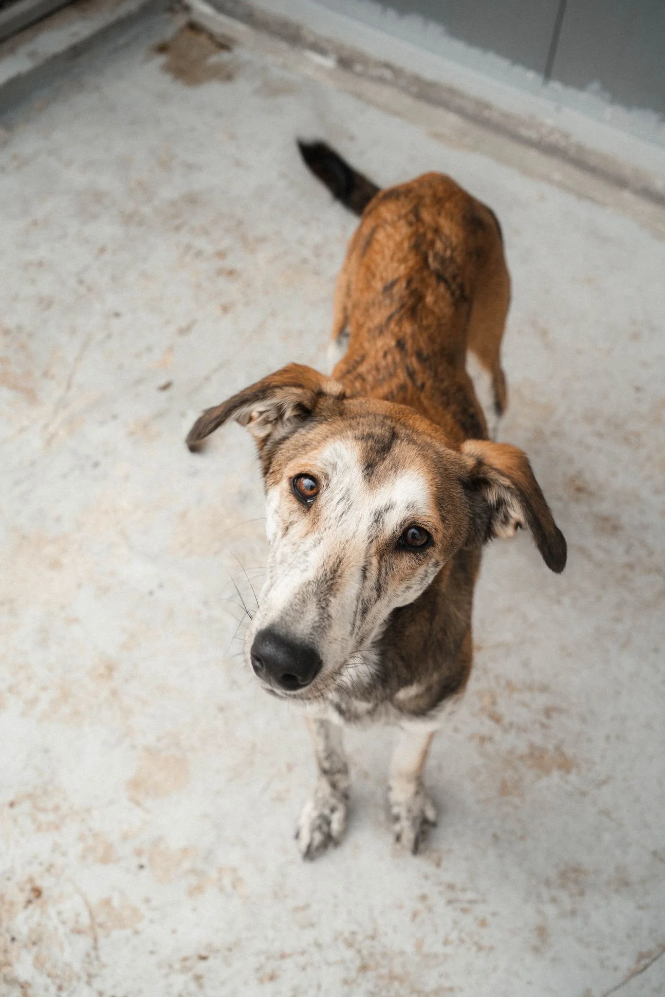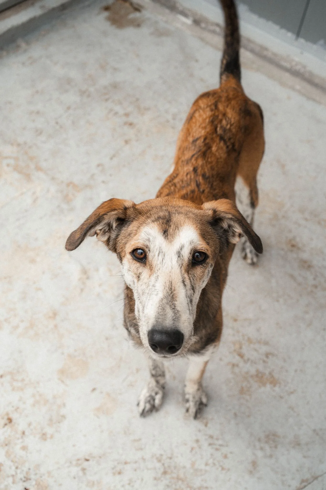 Pelle ähnelt mit seinen ca. 50cm, der schlanken, hochbeinigen Gestalt und dem schönen, pflegeleichten Fell einem Whippet bzw. griechischen Windhund. Diese Hunde bestechen durch ihre Anmut, aber auch durch ihre Ergebenheit und Treue und ihr rundum soziales Wesen.